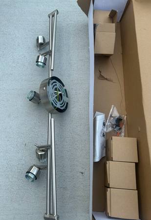 Selling this New In Open Box IKEA TIDIG Nickel Plated Ceiling Light 5 Spotlights 002.626.57. Unit comes as shown and bulbs not included.