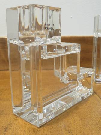 Each candle holder measures approximately 5 inches in length, 2 inches wide, and 5.25 inches high (at the tallest part). The opening for the candle has a diameter of approximately 1 inch and depth of about 1 inch. These candle holders are used but were primarily shelf display items and are in very good condition. There are no major chips or cracks. There are a couple of small scratches from being moved and stored. Please review all posted pictures. Pictures are of the actual item you will receive. Item comes from a smoke-free home. Feel free to ask me any questions.