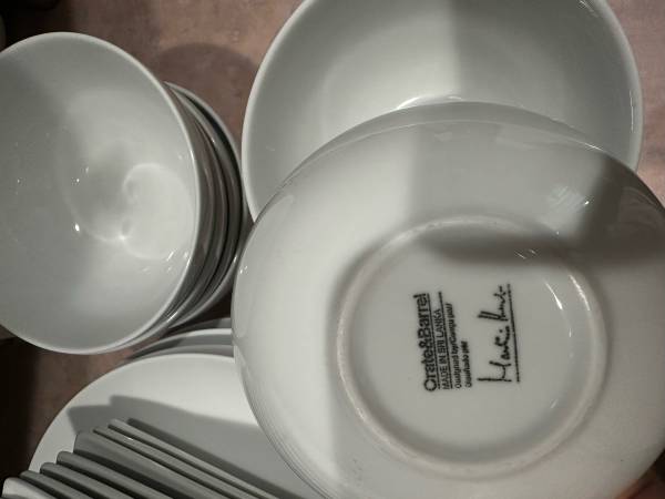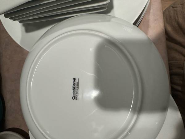 Recently replaced our dishes and would like these to go to a good home. A couple of them have small chips out of the edges. Purchased from Crate and Barrel about five years ago. Would prefer the entire set is sold together.