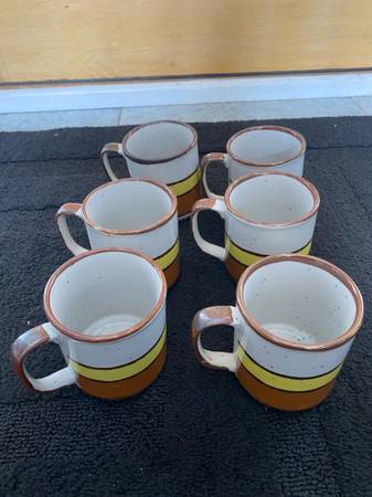 Stoneware speckled stackable cups. Vintage Heartside mugs.