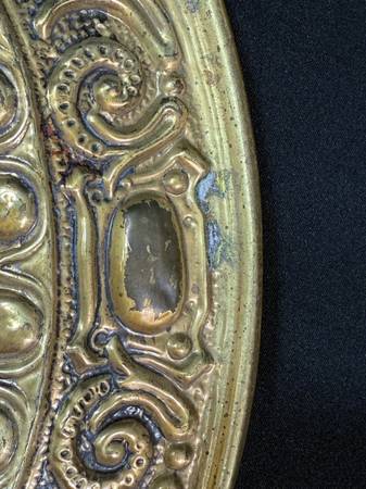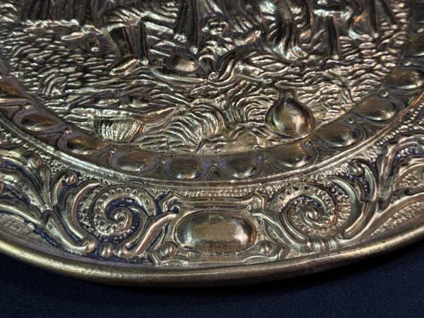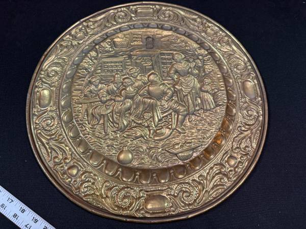 Hi, I have a Vintage Peerage Brass Embossed Wall Hanging Plate Family Dining Made In England for sale. It is still in great shape. It does have some wear. Some of the finish is gone by the top. I do only have the 1.