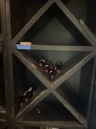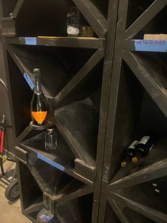 Solid wood commercial grade horizontal wine cubby storage 2 separate units , each holds approx 144 bottles 1 unit has 3 display shelf approx 200# each