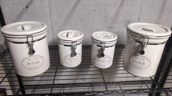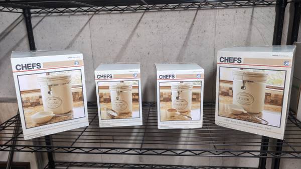 A set of barely used dry food storage containers in their original packaging. These seal air tight with the clamp on each of t hem and are already labeled for your convenience. I also still have...