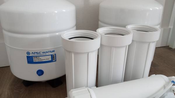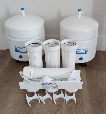 This is the Highly Rated APEC Water Reverse Osmosis System, RO-90 With TWO New 100 psi tanks. Super clean and Like New.