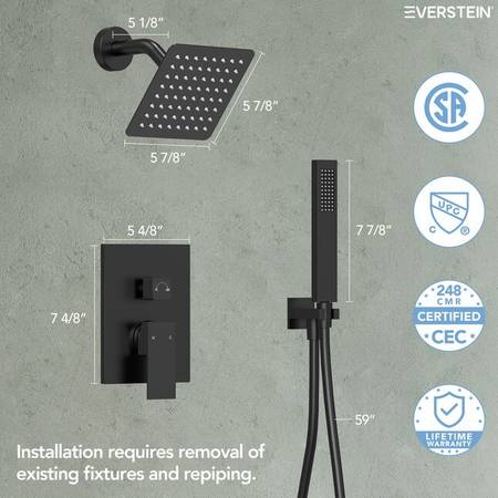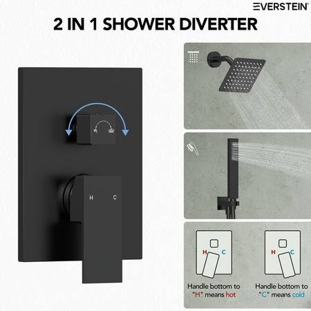 NEW EssentialEase Matte Black 6" Luxury Shower System 2-way Diverter...