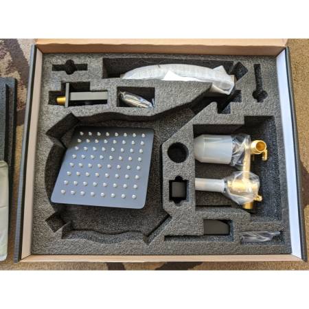 Brand New in Box Stylish & Modern 2-way Shower Kit with all pieces, packed well, and soft gloves included for assembly! Shower unit include a 6 in" shower head, a 6 in" shower head, and a...