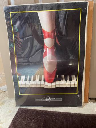 Ballet point shoes on piano keys poster Still wrapped in original plastic with its cardboard backing (poster itself is paper, not cardboard) Dimensions: 20" length x 28" height