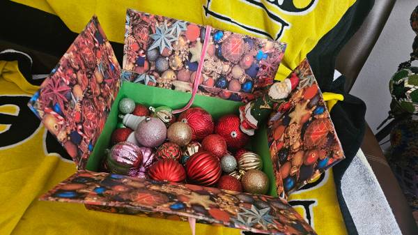 40+ pcs of Christmas ornaments in a handmade Gift box