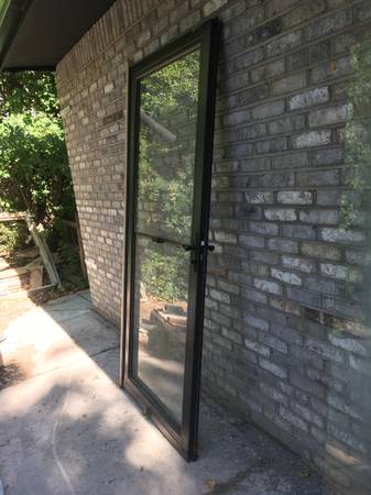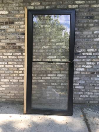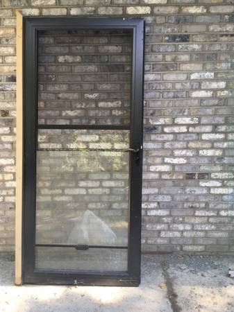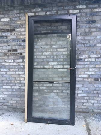 Combination glass and hidden screen door from Anderson. The bottom half of the door is stationery glass. The top half is either glass or a screen. The screen is hidden when the glass is showing. To "open" the top half and turn it into a screen, just slide the glass down, and the screen magically appears.