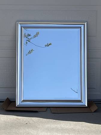 Silver bordered beveled glass mirror 28 X 34 frame, 22 x 28 mirror Dave
