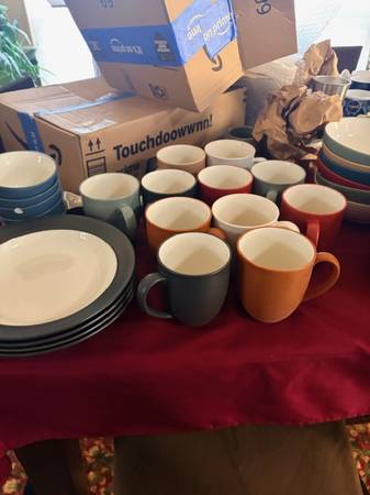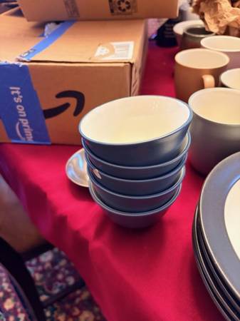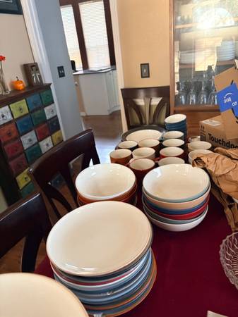 Microwave & oven safe, dishwasher safe, Colorwave Graphite. 17 dinner plates - 1 with small chip 1 server platter - new never used 13 salad plates - 4 with small chip 13 bowls - 2 with small...