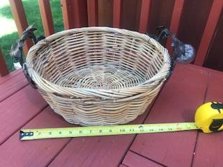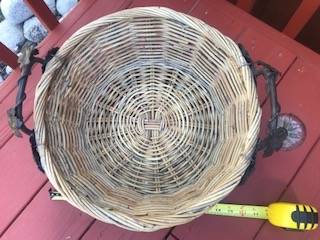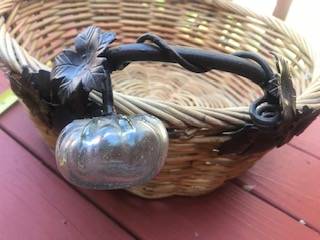 Wicker Basket with Metal/Glass Handles Only One Handle has a glass Pumpking Basket Height: 6 Inches Basket Diameter: 1 Foot, 5 Inches $15.00 CASH ONLY
