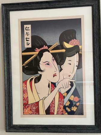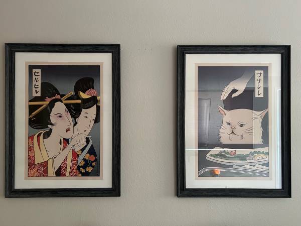 This is a two piece print of the Woman Yelling at Cat meme in the style of Japanese art (Ukiyo-e style). Here's the link to the meme - https://en.wikipedia.org/wiki/Woman_yelling_at_a_cat. This is a...