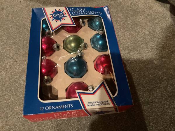 Set of 24 glass Christmas tree ornaments made by Goby in the US. Original box. $25.00