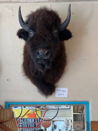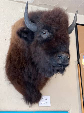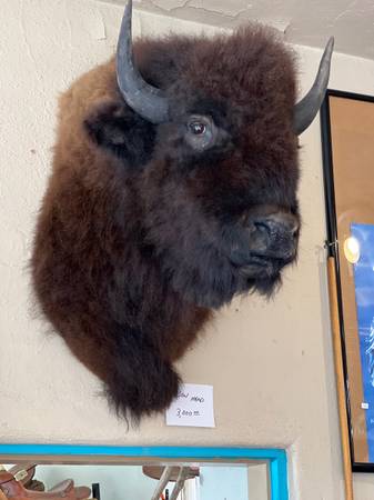 I have this medium size Buffalo taxidermy head for sale. This is a brand new fresh job from the taxidermist. Please come see this at Ruxton's Trading Post, 22 Ruxton Avenue in Manitou Springs. Please call 719-377-191 nine first to make sure we are open or to make an appointment.