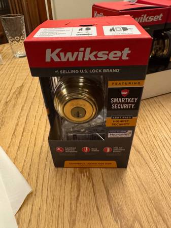 Brand new Kwikset smart key single cylinder dead bolts. Have at least four possibly five in bright brass finish $40 new at Home Depot $25 apiece. These are perfect for rentals and landlord...