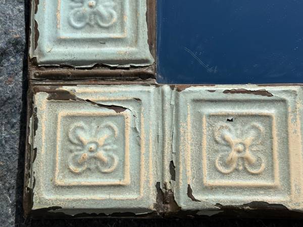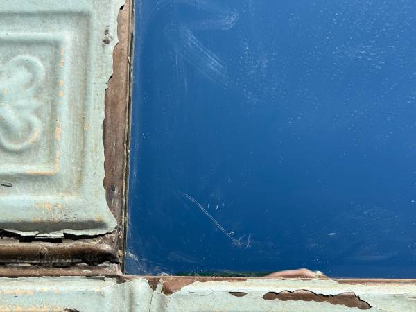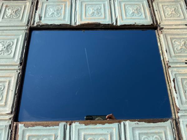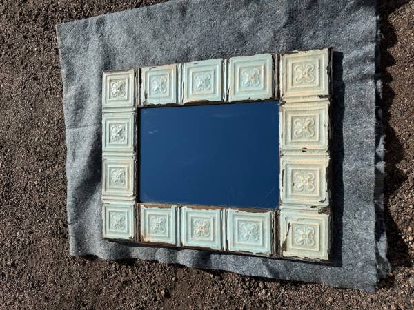Hi, I have an Urban Artifacts, Inc. Distressed Square Mirror Framed w/ Reclaimed Tin for sale. It is still in great shape. It does have a scratch on the bottom of the mirror in left corner. It does have some distressed paint…