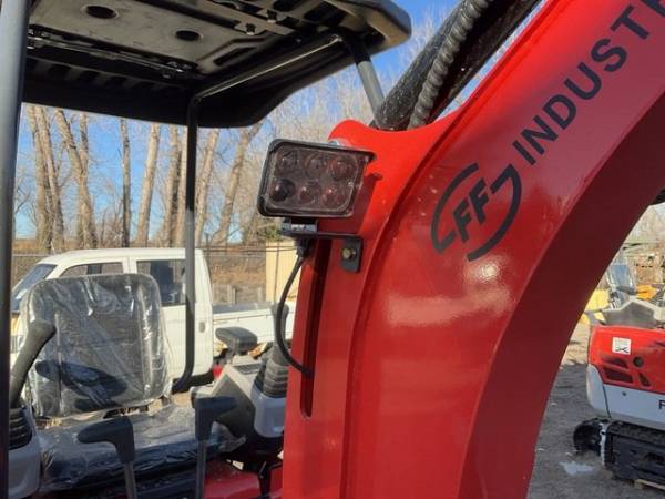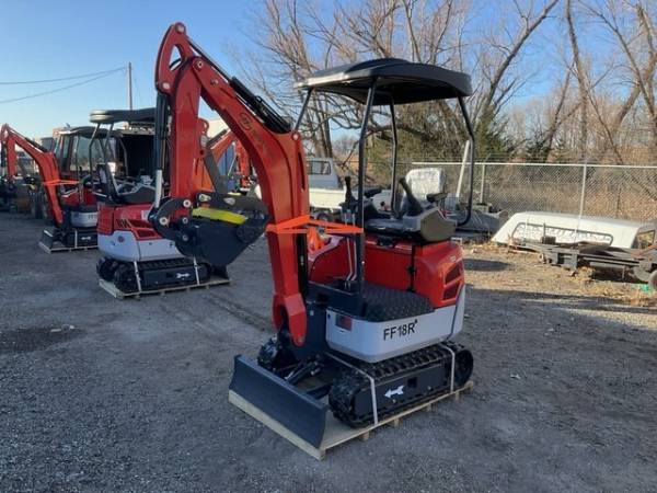 Up for sale is a 2024 FF Industrial FF18R Mini Excavator w Thumb OROPS. 32'' Stick, Auxiliary Hydraulic Plumbing, 39'' Backfill Blade, 7'' Rubber Tracks, 14.5'' Digging Bucket, Manual Thumb. Powered by a 15 HP, 420 cc RATO gasoline engine. Weighs 2116 lbs.