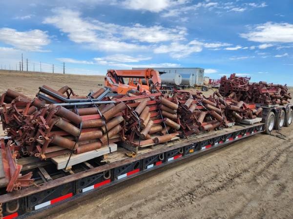 Up for sale is a Large Lot Continental Overland Conveyor Components Stands and Rollers 48 inch Wide. Theseare 48 inch trough rollers with stands for mounting on pads. Includes 50 plus trough rollers and stands. Please take a good look at the pictures and call with any questions.