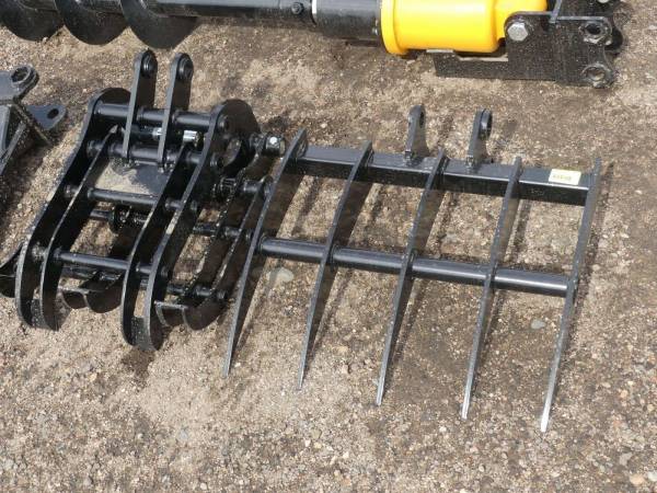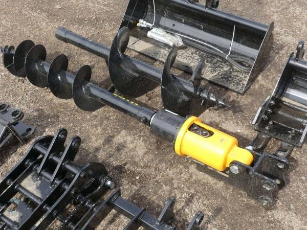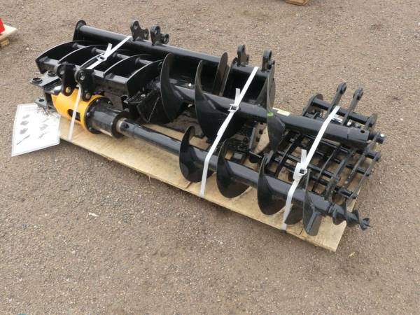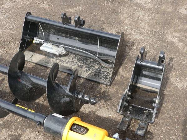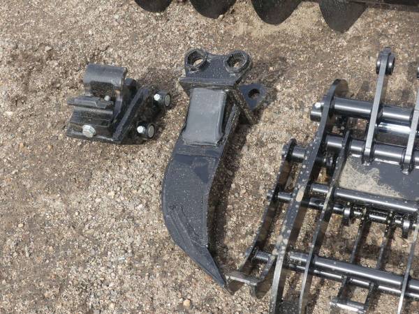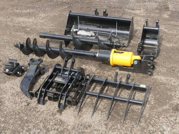 Up for sale is a New 8-Piece Attachment Set to Fit Mini Excavator, 1-2 Ton. Includes grapple, ripper, auger with multiple tips, Quick connect, 2 buckets, and clearing attachment. Please take a good...