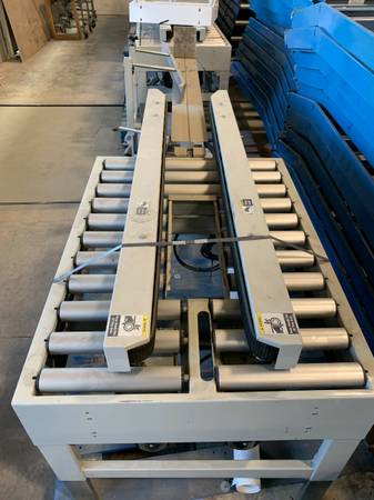 The carton erector has two stations. The first station folds the bottom flaps of the carton and the second station seals the bottom flaps and feeds the carton automatically on to a conveyor.