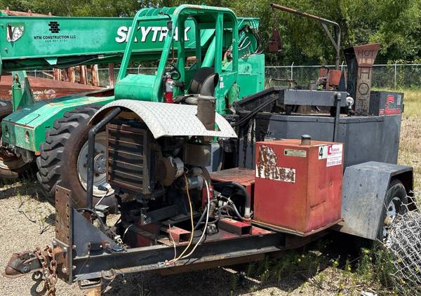 Selling a 1997 Cimline 105DMA crack sealing machine with a 105-gallon capacity and diesel-fired burner. This is a complete, trailer-mounted crack sealer with an Isuzu industrial engine and is easy to service, as parts are available. It has a Hydraulic agitation system which includes forward reverse paddles to keep material consistent. It also comes with a Hydraulic gear pump which delivers steady material flow to the wand. It is equipped with a Heated hose and boom making for easy, ergonomic application. This machine sits on a Single-axle trailer with electric brakes, pintle hitch, safety chains making it easy to tow from job to job.