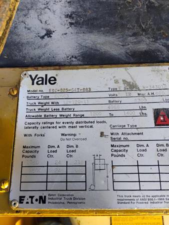 Yale Eaton Electric Forklift - heavy equipment - by owner - sale -...