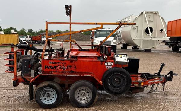 For sale is a 2011 Marathon crack sealer Melter applicator trailer, powered by a 3-cylider diesel engine with only 3,307 hours. Features include hydraulic agitation, heated rubber sealant delivery hose, LED work lights, and tandem axle trailer with 205/75R15 tires. This hot rubber Melter, is ideal for asphalt crack repair, road maintenance crews, sealcoating contractors, municipalities, and highway preservation work. Heavy duty diesel-powered asphalt crack filling system. Take a good look at the pictures and give Larry a call at show contact info