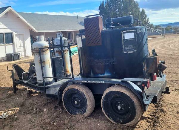 Crack patch seal machine, mastic application, pavement equipment, road maintenance repair, Asphalt sealing, sealant melter, hot mastic, polymers modified, highway maintenance, used Patcher, hot pour, melting kettle, tandem axle Trailer mounted, diesel fired, municipal equipment, construction Trailer, road work, pavement preservation, double boiler, aggregate mixer, commercial industrial Heavy duty machinery,