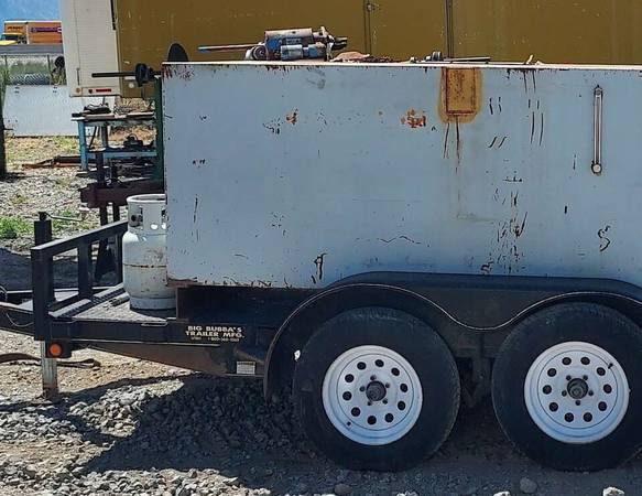 For sale is a robust approximately 400 gallon Portable fuel transfer trailer, priced at $5,500. This heavy-duty two-axle tank trailer is ideal for on-site refueling in agriculture, construction, or fleet management. Originally set up as a mobile hydraulic power unit, the unit features a sturdy tank and the original control valves are present (motor is removed). Easily convert this unit into a high-capacity mobile fuel tank for diesel or other non-regulated combustible liquids. Excellent value for a durable two-axle chassis and large-capacity tank ready for your pump setup. Perfect for farms, construction sites, and remote equipment fueling.