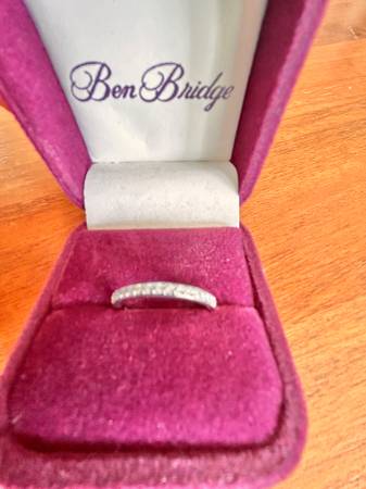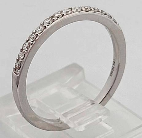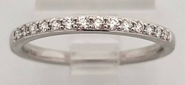 One, new, never worn, 14K lady's white gold ring, with 14 round brilliant cut diamonds.