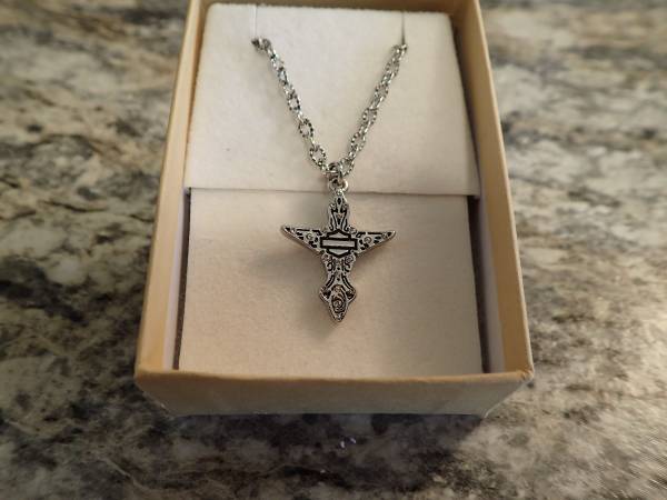 I had so much of this stuff and just never wear them all, most of these could pass for brand new! Check out the pics, that should be proof enough and there is only a couple items left. Anyway, all are in fantastic shape, not beat up or bent. These were all purchased at Rocky Mountain HD and in Sturgis. Prices are at least half of the actual cost from the Harley Davidson Dealerships. Most of these have hardly been worn at all, could pass for new. All are great for a HD lady rider and would make a great gift, both are in gift boxes. Bracelet is genuine sterling silver and has recently been cleaned, polished and checked by a jeweler for any problems. In perfect shape, clasp is new and strong, comes with a really nice black gift box. Bracelet is 7" long but can be adjusted. Cross necklace is chrome finish, not sterling silver, and has sparkling crystals in it. I live in southwest Lakewood near Morrison, not far from Avalanche HD, contact me to see before you pay their prices! Seven, two, zero, three, three, one, seven, six, six, two.