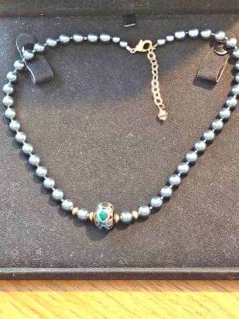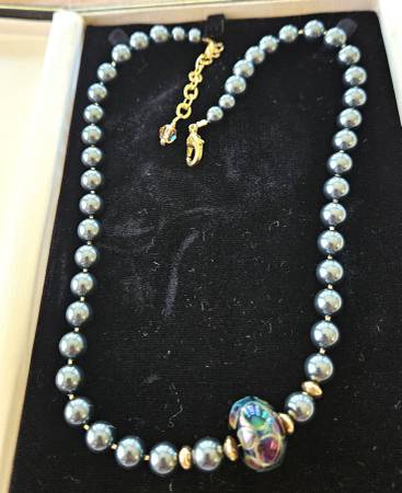 Look at the pictures here. It is custom made from a great artist. The beads are Murano like and it has a beautiful lock/closure. Come see it!! Originally $40 Get it for your special lady!!