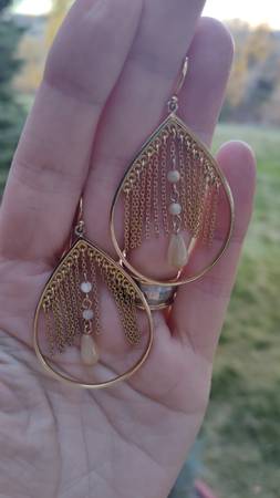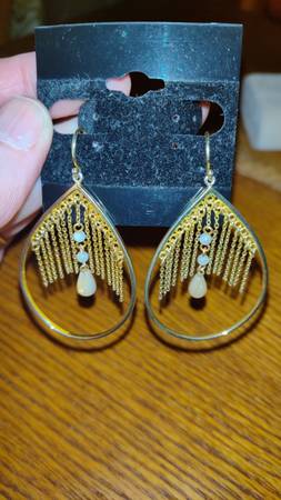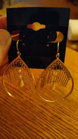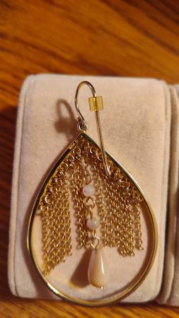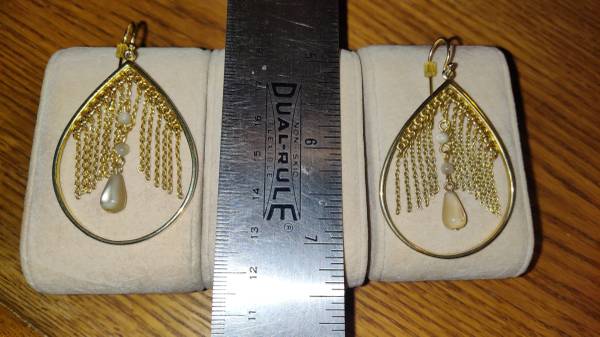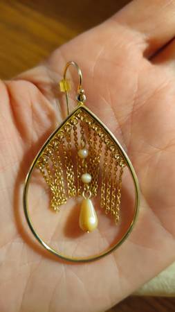 .925 Sterling Silver Gold Vermeil Chain Dangle Hoop Fr Hook Earrings! - $129