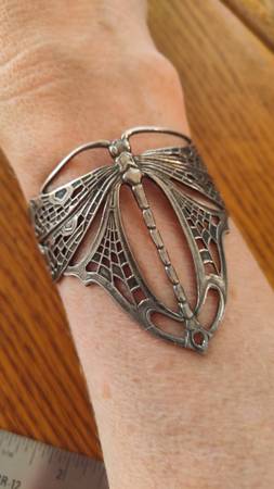2) .925 Sterling Silver Art Nouveau Dragonfly Cuff Bracelet - Exceptional! - $200
