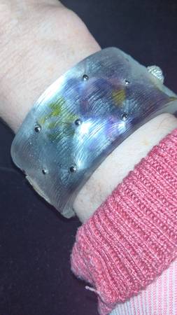 2) Alexis Bittar Purple Yellow Lucite Crystals Oval Clamper Bracelet - 2 x 2.5 in. AB Pouch included as shown. - $325