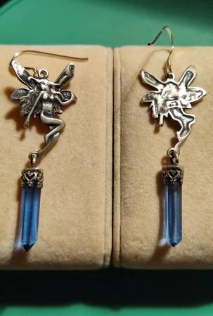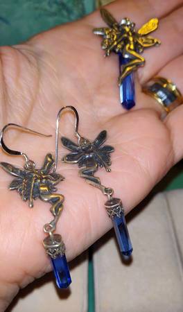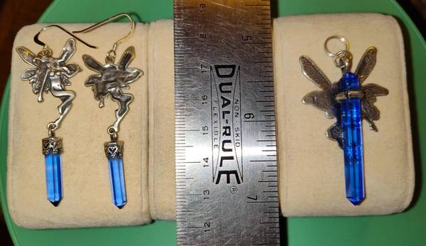 1) .925 Sterling Silver Stamped Fairy Royal Blue Crystal Pendant + Dangle Earrings - Magical - $125 for the set