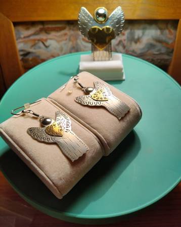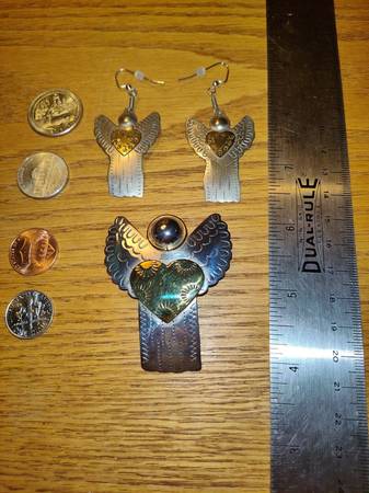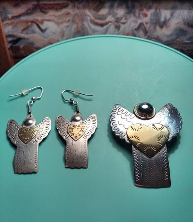 3) .925 Sterling Silver Mexico Angel Pendant-Pin-Brooch and Earrings Set - Excellent - $133 for the set