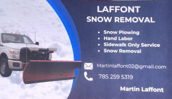 Snow plowing Hand labor Sidewalk only service Snow removal