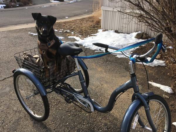 My blue and grey Schwinn adult tricycle was stolen from my backyard in the Vista Village mobile home park between 9 pm on Tuesday, Nov. 18 and 9 am on Wednesday, Nov. 19. It's old but in decent condition, with a large basket and a chain lock around the rear axle. It's missing the cap from one of the handlebars and had a small chain attached to the basket with a blue carabiner. It also had a rainbow fabric strip, but this may have been removed. The left rear tire has a slow leak and may go flat soon.