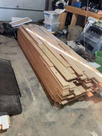 I have 300 sq feet of Solid Oak Hardwood flooring. It's 3 1/4" wide in various lengths. You can see in the pic a room I finished with this - decided not to do my other floor. It's in excellent condition having been stored in a dry garage for about a year. Asking a fair price of $3 per sq foot - a steal these days for quality new wood.