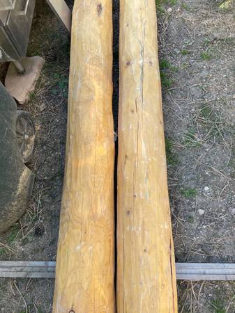 Two Timbers cut out so they will cover corners ect 9’ long and 8.5” diameter Timbers log lumber construction wood trim rustic