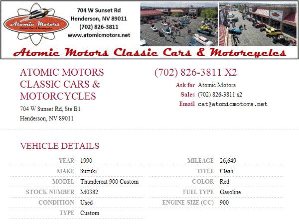This vehicle is located at Atomic Motors Classic Cars & Motorcycles in Henderson, NV just 20 mins from the fabulous Las Vegas Strip. Come down and see us or call Bill at 702-556-0888. Additional pictures and videos may be found on our site at www.atomicmotors.net