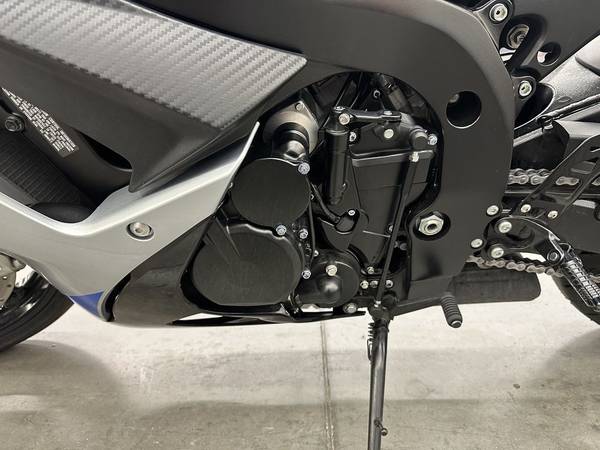 The GSX-R600’s compact, fuel-injected, 599cc, four-cylinder engine delivers a rush of power from idle to redline. Located between the frame’s spars, the engine’s top end is canted forward to improve cylinder head charging for increased power output.