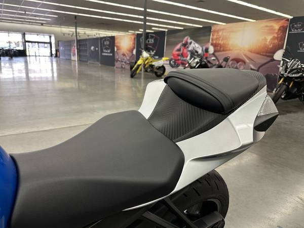 The 2023 GSX-R600 is available in new Pearl Brilliant White and Metallic Matte Stellar Blue, or Glass Sparkle Black and Glass Matte Mechanical Gray paint schemes.