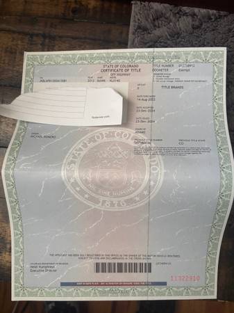 Upon sale you will receive a clean Colorado title and a bill of sale to register for OHV.