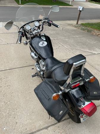 1998 Yamaha Virago 1100cc for sale. I have owned this bike for about half of its life and it rides very well and is in good condition. This bike has been ridden year-round as weather permitted and otherwise kept in my garage. The tires have plenty of life left in them and the oil and oil filter were recently changed. VIN provided upon request. Cash only.