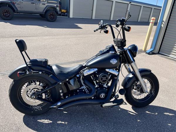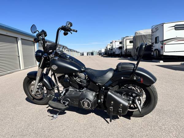 2017 Harley Davidson Softail Slim, black denim. perfect shape lots of extras and upgrades. Ape hangers, mufflers, air intake timing cover, removable windshield and sissy bar, and screaming eagle tuner only 7,200 miles. like new. only selling because I don't ride enough anymore. $12,500 email me with any questions.