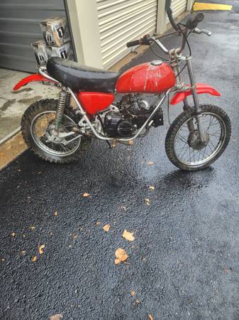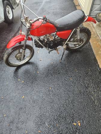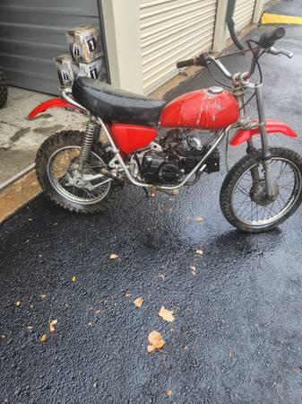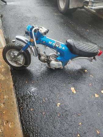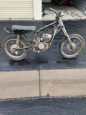 197* Honda SL70, no title, original engine replaced with 90 cc Chinese engine, son broke the kick start engagement mechanism, I have a replacement 125 cc Chinese engine that I was going to replace the 90cc with (rather do that than split the cases for the kick start fix...), otherwise all there - seat, side covers, fenders etc.