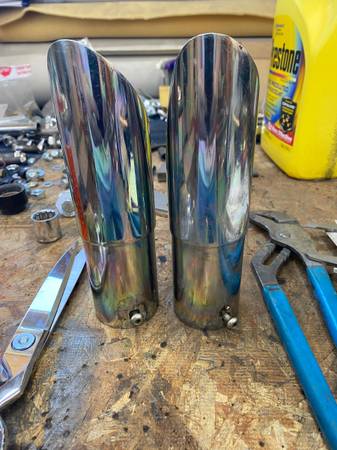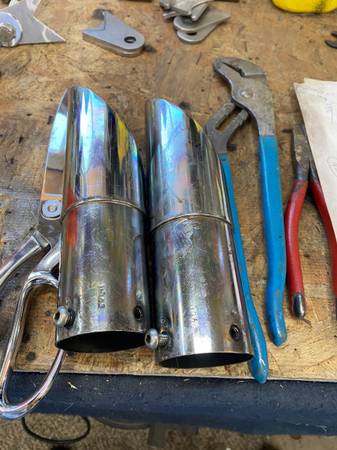 Have a set of slash cut exhaust tips from a project I never used. The OD is 2.120" where they slip together. $25 for the pair Call